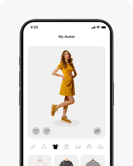 🪞 Use your AI avatar to preview outfits before you wear or buy them.